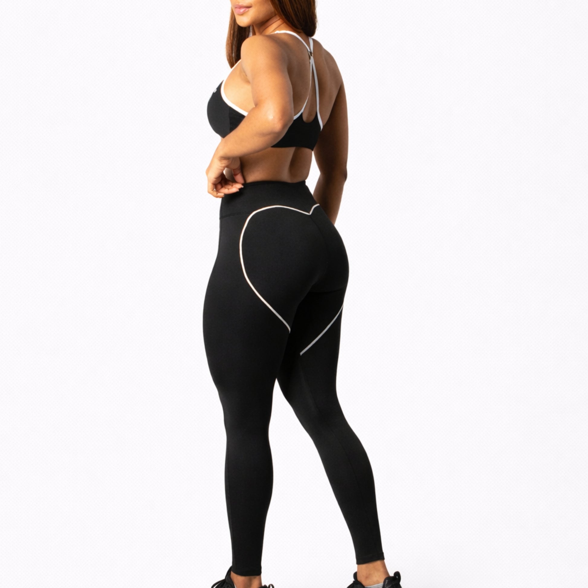 El HeartLine Set de Panda Fit es un conjunto deportivo de dos piezas diseñado para realzar la figura. Incluye un top con tirantes y una licra de talle alto que define las curvas. Sus líneas blancas en la zona de los glúteos crean un efecto tipo corazón que estiliza la silueta. Confeccionado en tela elástica y de secado rápido, es ideal para gym y entrenamientos funcionales.
